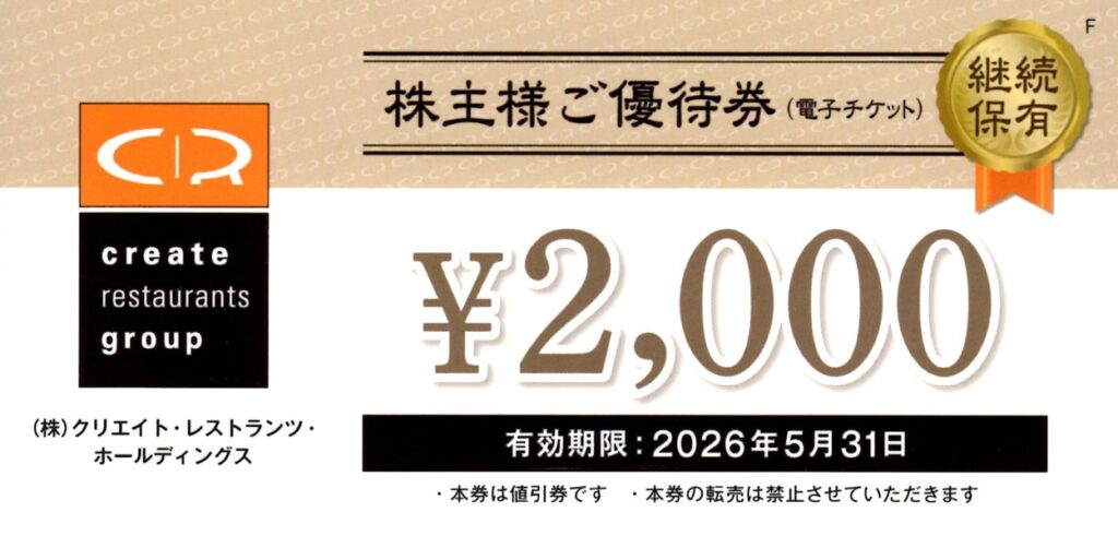 今回は、多彩な飲食ブランドを展開する クリエイト・レストランツ・ホールディングス(3387) から届いた株主優待を紹介します。