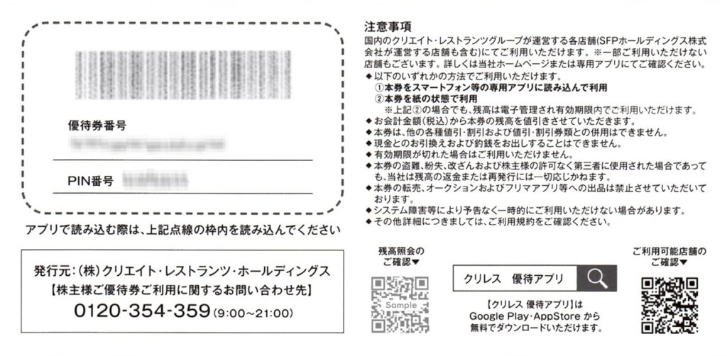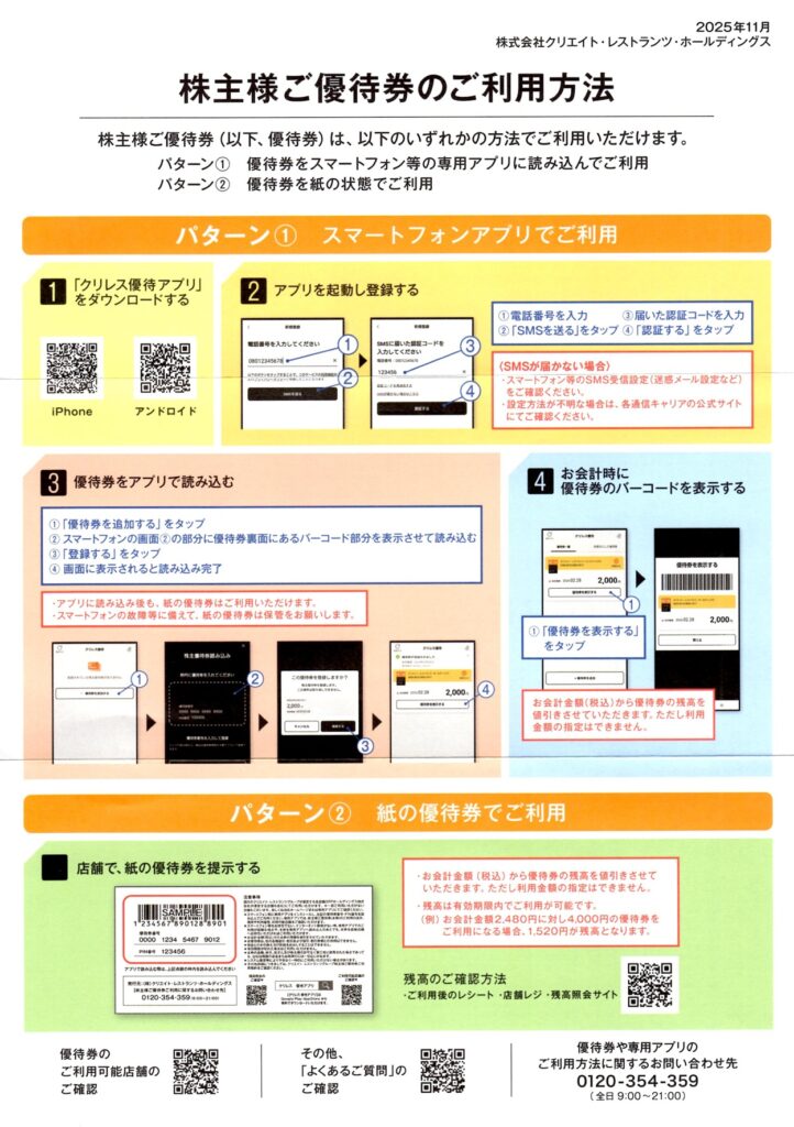 クリエイト・レストランツ・ホールディングスから株主優待が届きました。