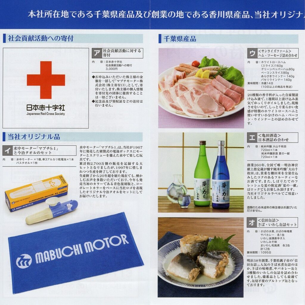 マブチモーターから株主優待の案内が届きました。