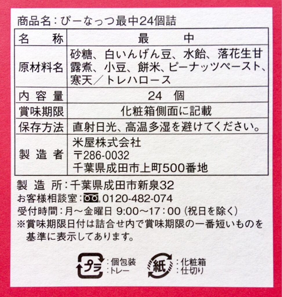 本日到着したのは「ぴーなっつ最中 24個入」です。