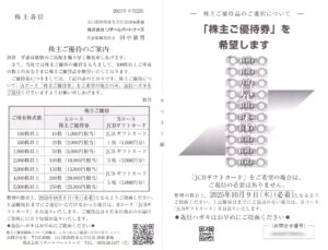 | 3,000株以上 | 15,000円分 | 5,000円分 |
