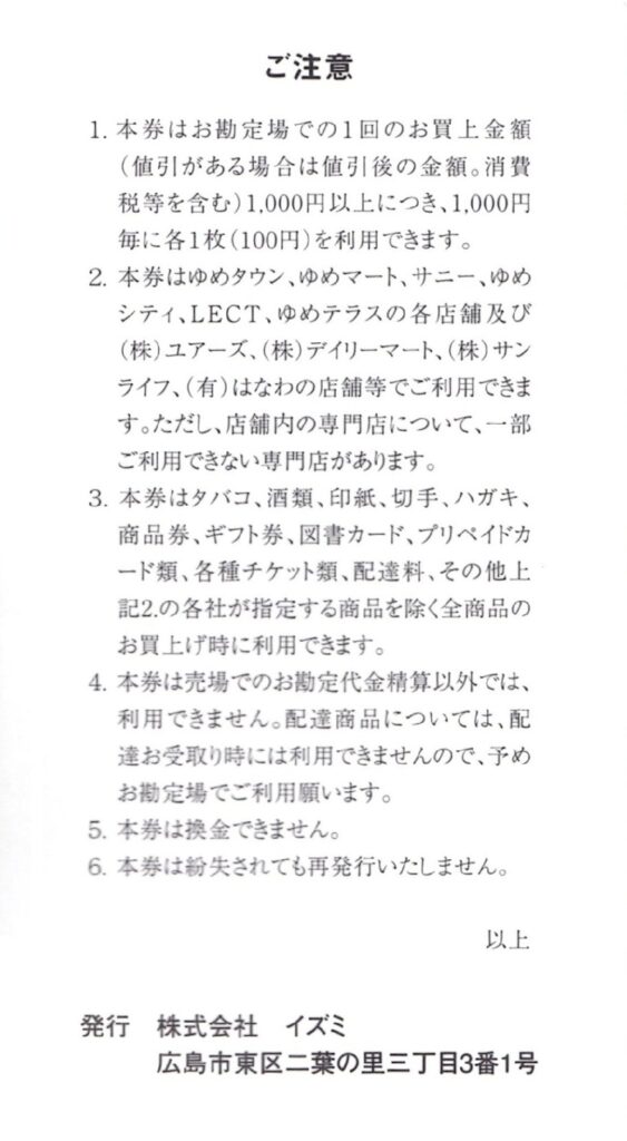 今回は、ショッピングセンター「ゆめタウン」や「ゆめマート」を展開する イズミ(8273) から届いた株主優待を紹介します。