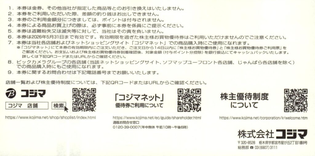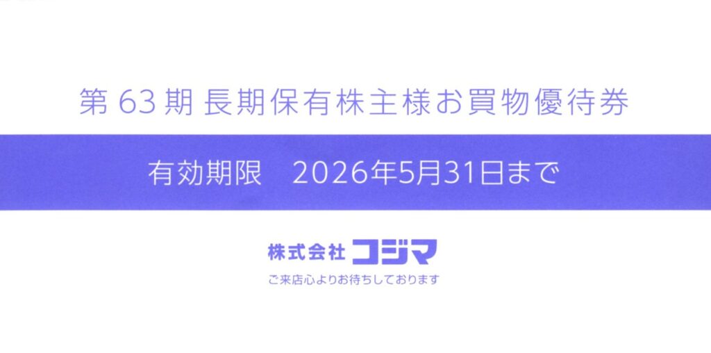 今回は、家電量販店でおなじみの コジマ(7513) から届いた株主優待を紹介します。