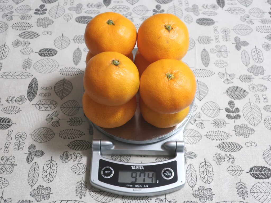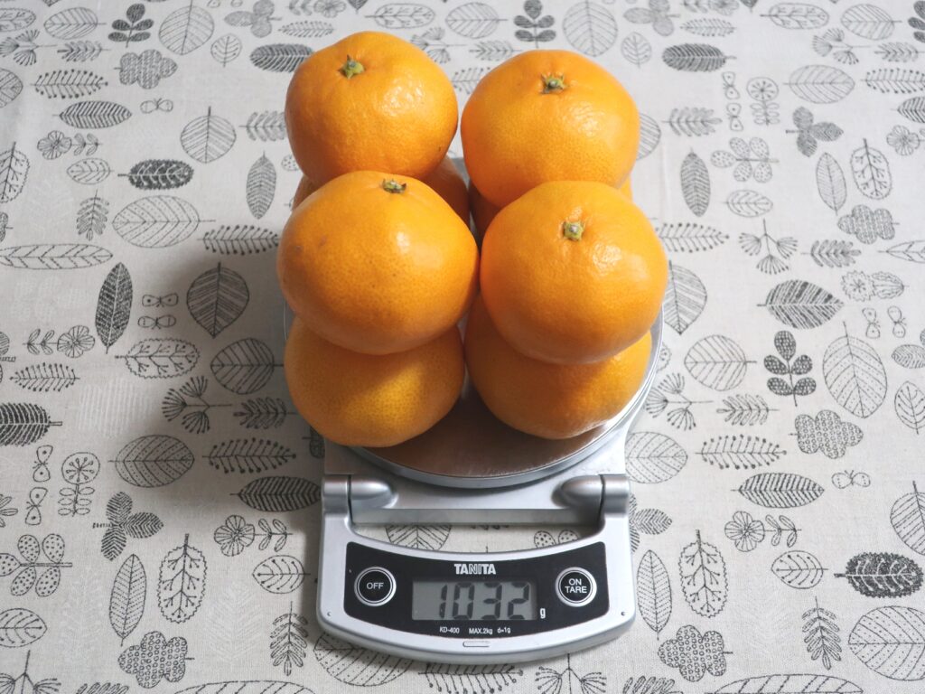 箱の中には16個、合計2,006gのみかんが入っていました。