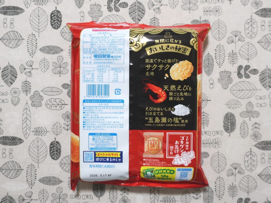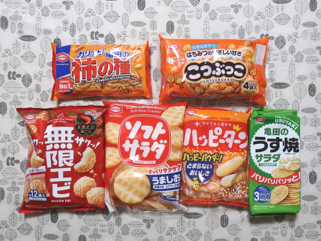 実際に送られてきた商品は以下の6点で、亀田製菓公式通販では1,358円相当の商品でした。