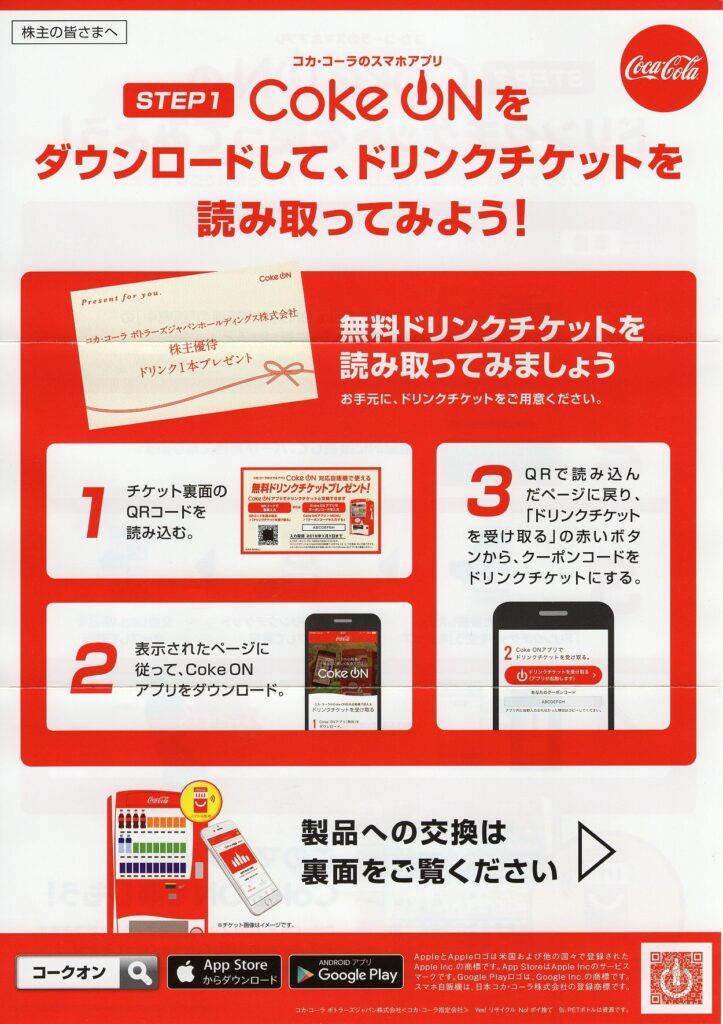 コカ・コーラボトラーズジャパンHD(2579)から株主優待の案内が到着