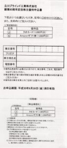 立川ブラインド工業(7989)から創業80周年記念株主優待の案内が到着