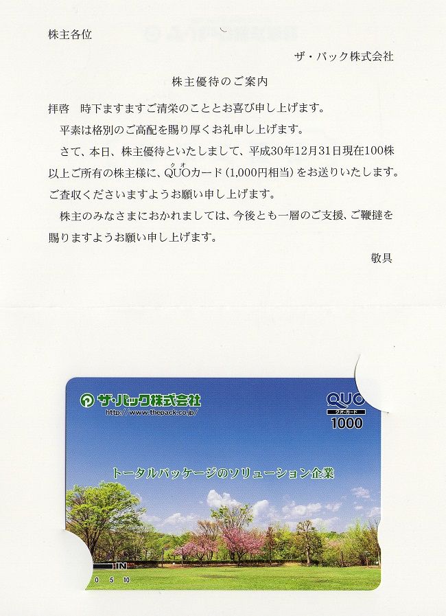 ザ・パックから株主優待が届きました。