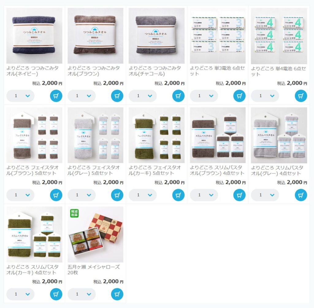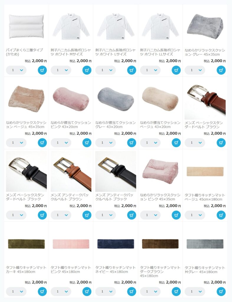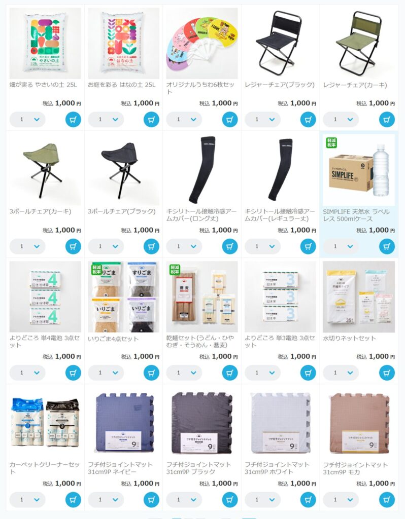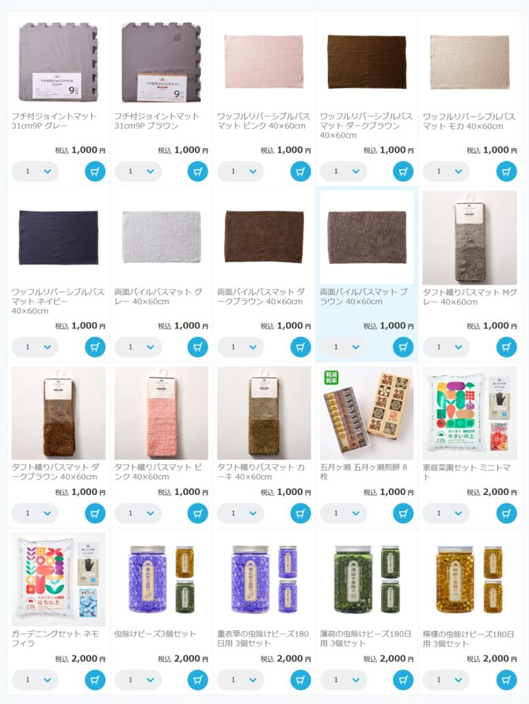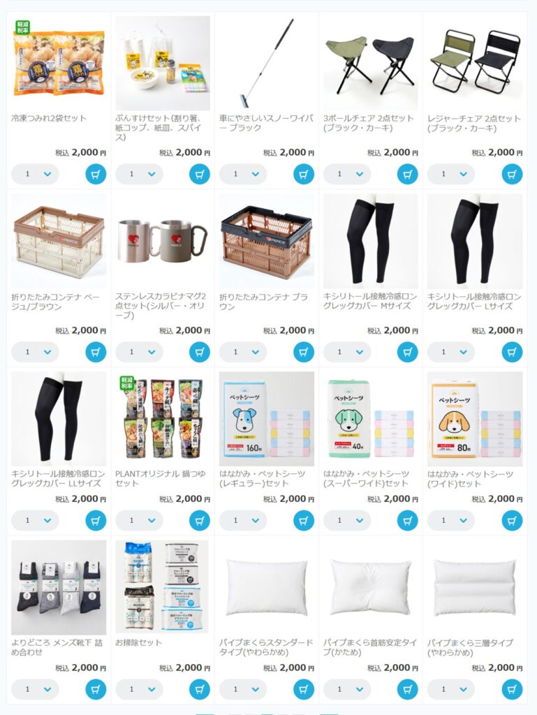 1,000円・2,000円の商品が合わせて92点掲載されており、PLANT Payカードを使って購入できます。