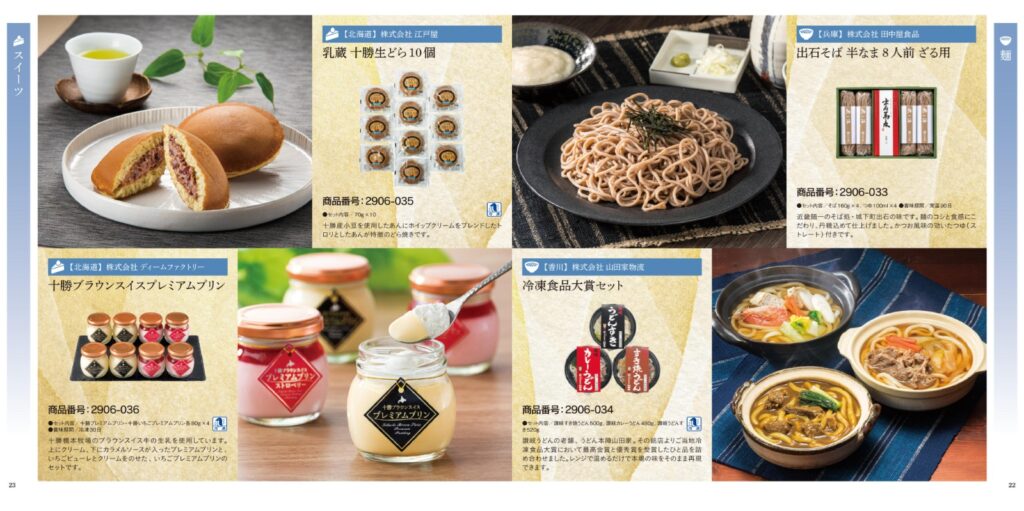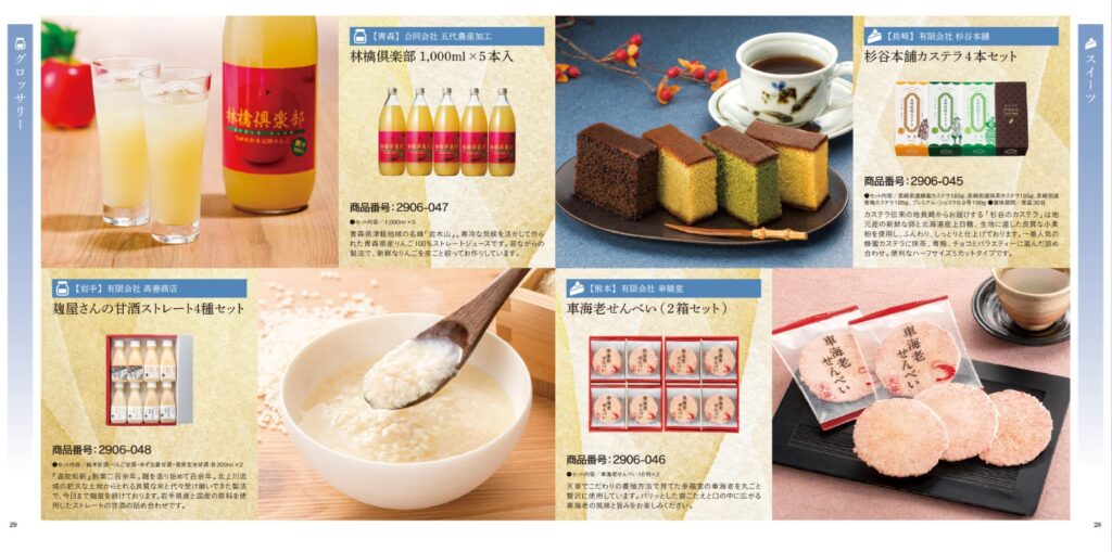 食品・惣菜・スイーツなど、全国の美味しい特産品から好きなものを選べる内容です。