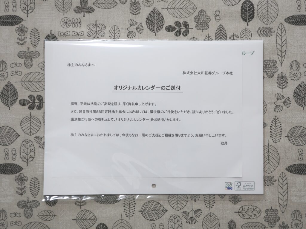 今回は、証券業界の大手として知られる大和証券グループ本社(8601)から届いた議決権行使のお礼を紹介します。