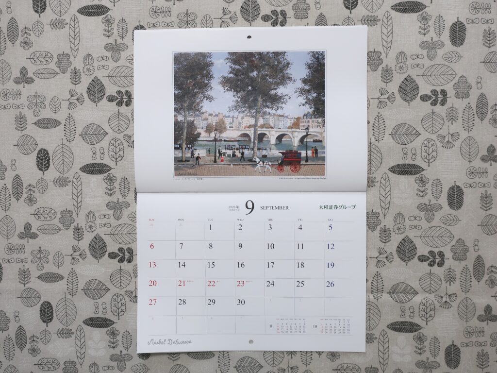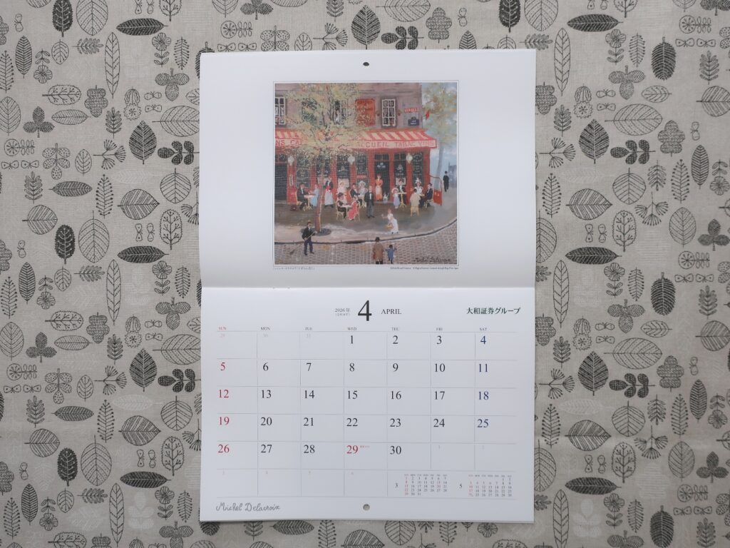 カレンダーは開いた状態で、縦42cm×横29.7cm(A3サイズ)。