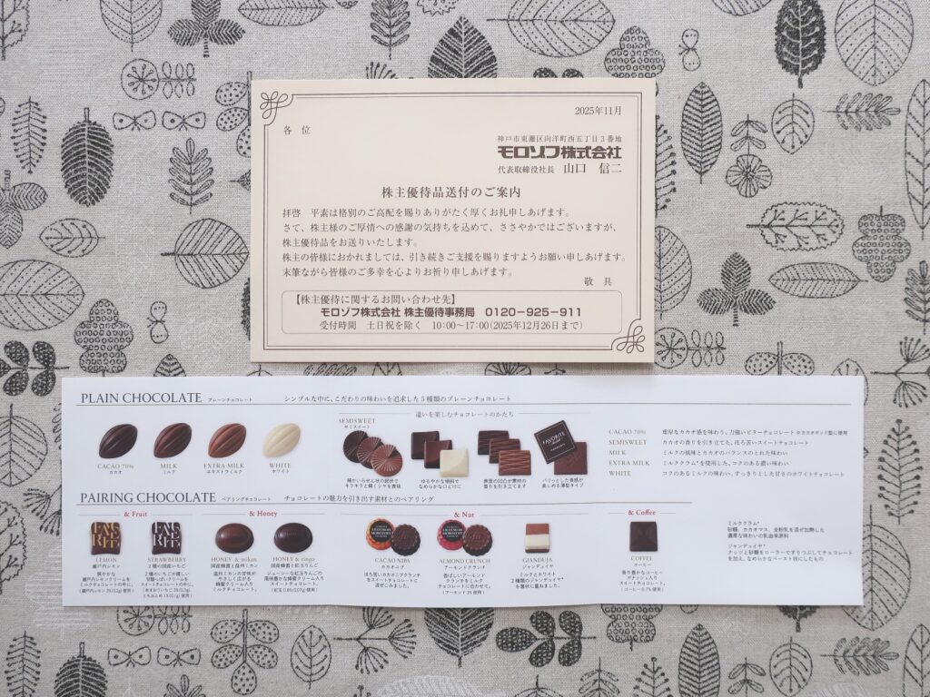 今回は、チョコレートや洋菓子でおなじみの モロゾフ(2217) から届いた株主優待を紹介します。