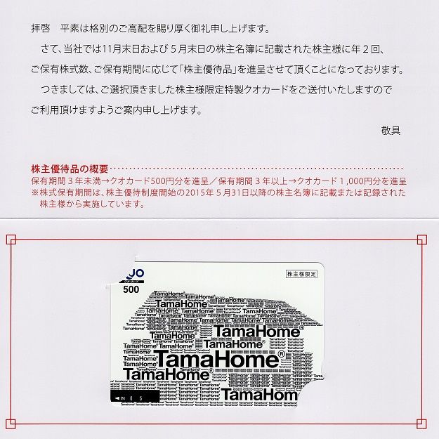 タマホームから2019年1月15日に選択していた株主優待が届きました。