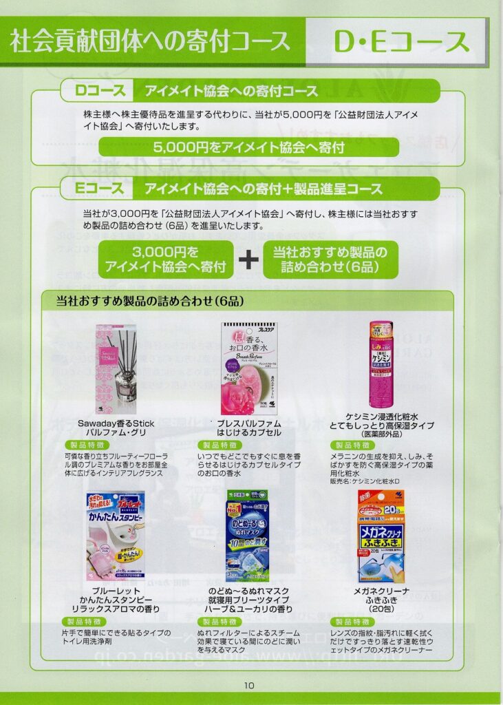 | 100株以上 | 自社グループ製品 5,000円相当 当社通信販売製品の10%割引 |