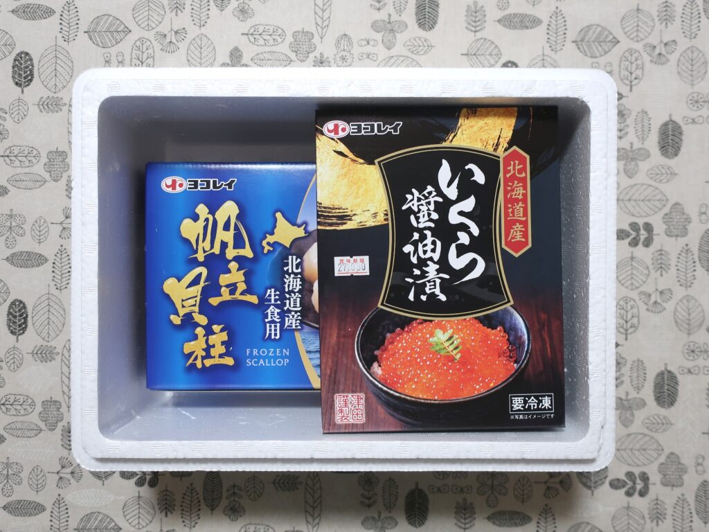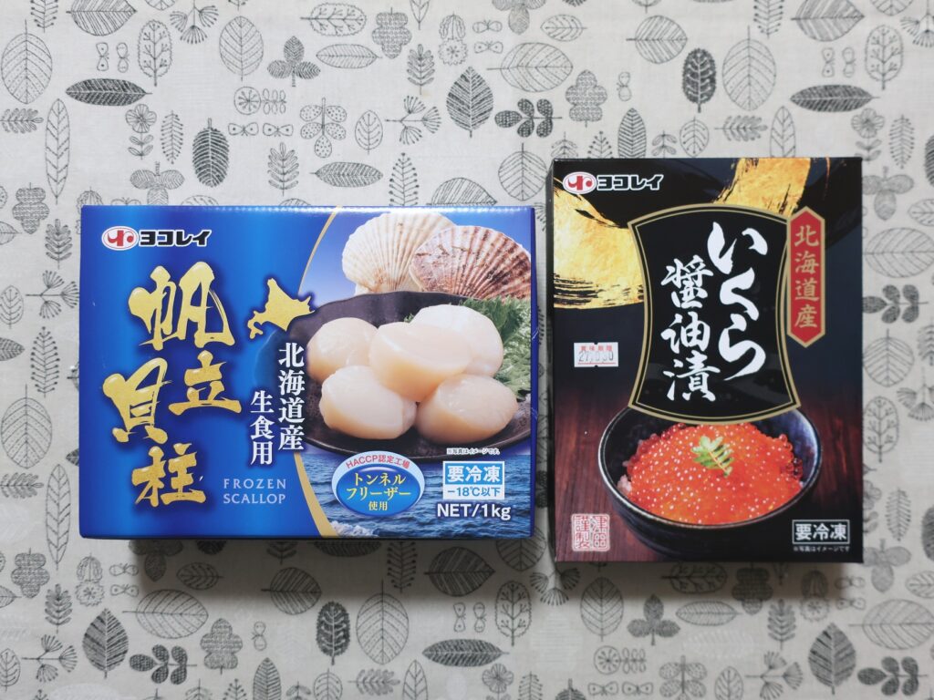 権利確定日は2020年9月末。保有株式数は3,000株。届いた優待品「いくら醤油漬け500g」と「生食用帆立貝柱1kg」を写真で詳しく紹介します。
