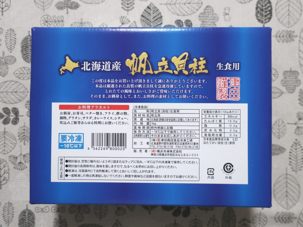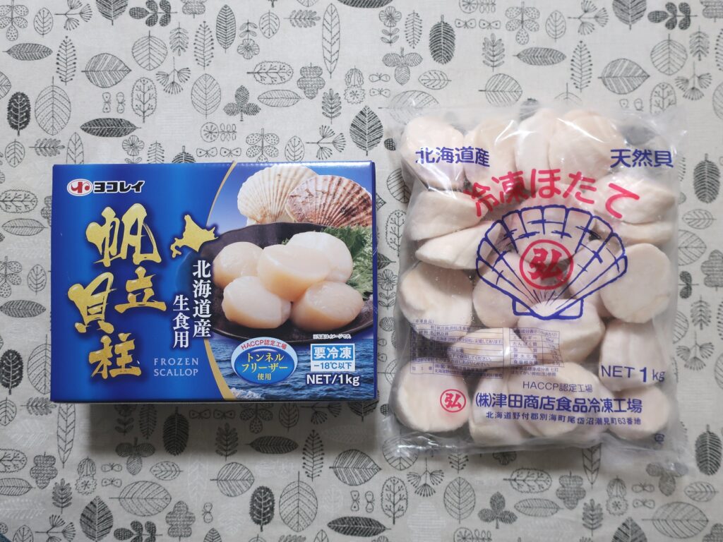 ・ホタテは直径5~6cmもあるLLサイズで、全部で21個入り。
