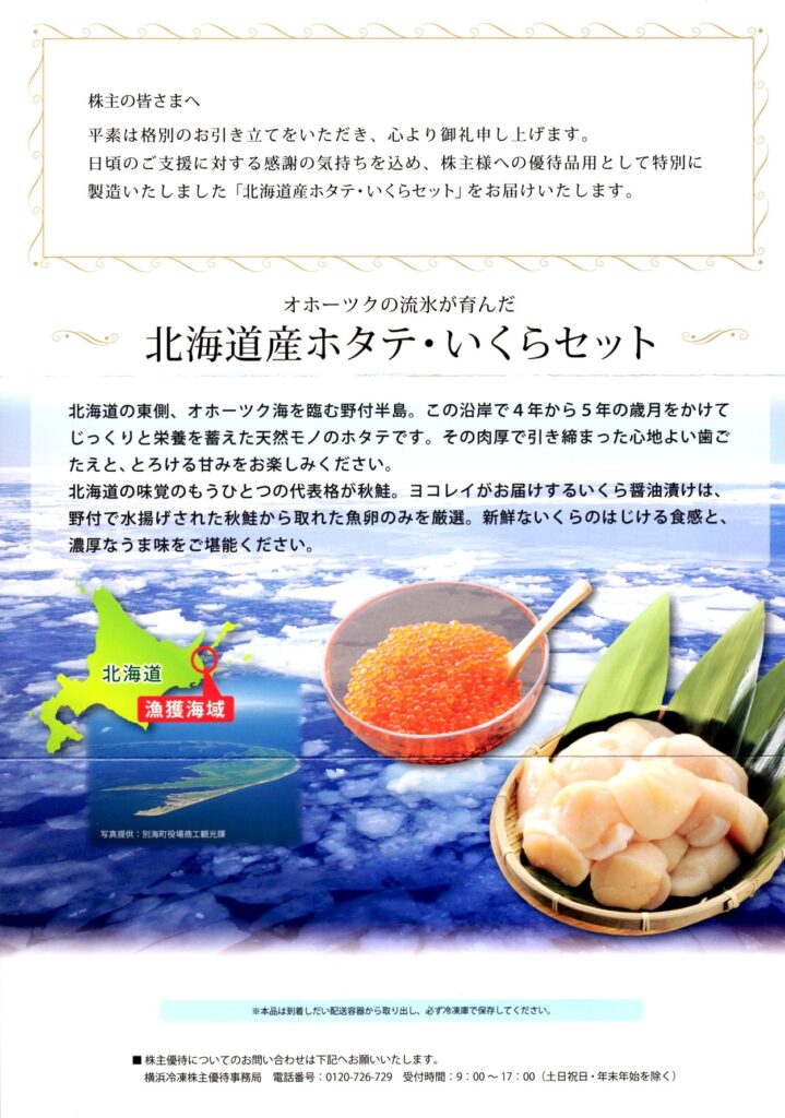 3,000株(1年以上)なので「北海道産のホタテ・いくらセット」です。