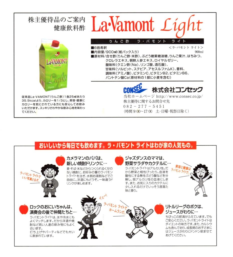 コンセックでは、毎年 3月末・9月末 の権利確定日に以下の優待がもらえます。