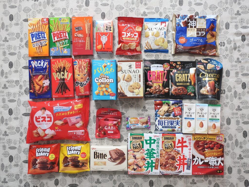 江崎グリコでは、毎年6月末の権利確定日に自社グループ製品の詰め合わせがもらえます。