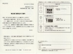 ニイタカから、2018年12月29日に選択していた株主優待が届きました。
