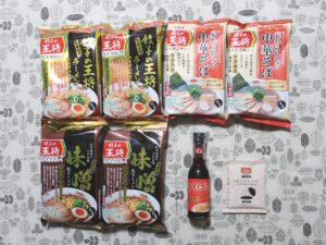 | 12,500円コース | ラーメンパック、王将マジックパウダー、 餃子の王将辣油、餃子のたれ詰め合わせ 12,500円分相当 |