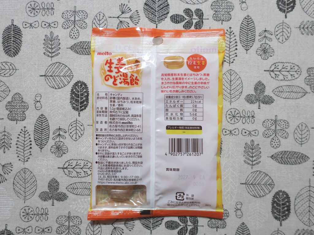 7. 生姜のど湯飴 52g(162円)