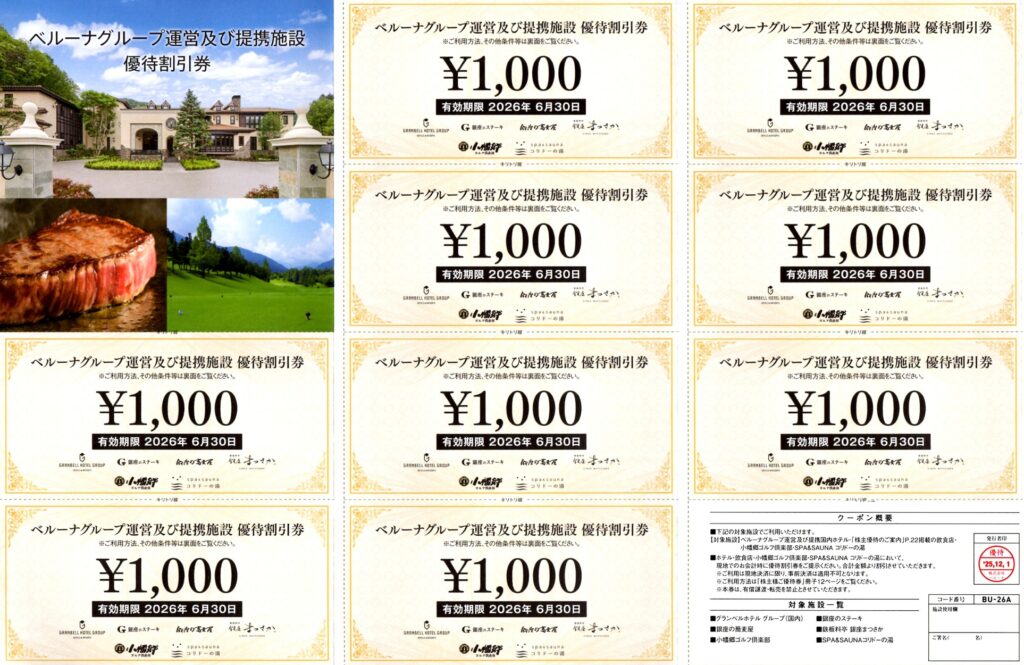 ※②の優待割引券はベルーナグループが運営及び提携するホテルなどで利用可能