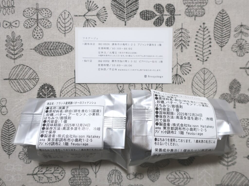 今回の詰合せは、畠山和也シェフがオーナーパティシエを務める「feuquiage(フキアージュ)」の焼菓子セットでした。