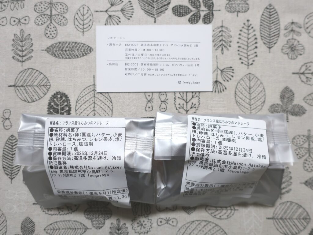 - マドレーヌ 2個