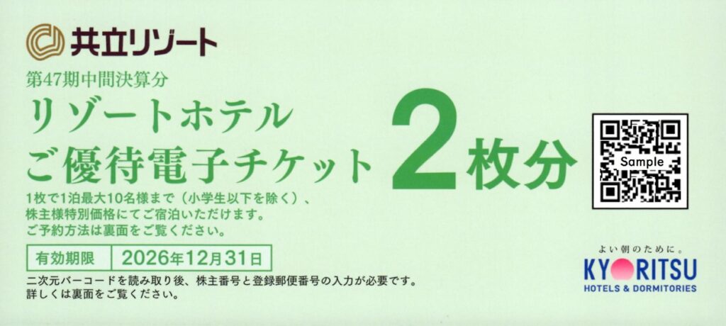 ドーミーインや共立リゾートを日頃から利用している方にとっては、実用度が高い優待内容です。