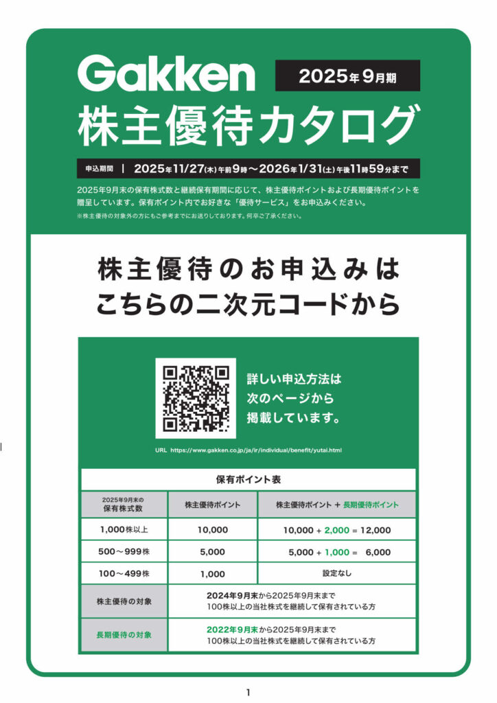 今回は、教育関連サービスでおなじみの 学研ホールディングス(9470) から届いた優待案内を紹介します。