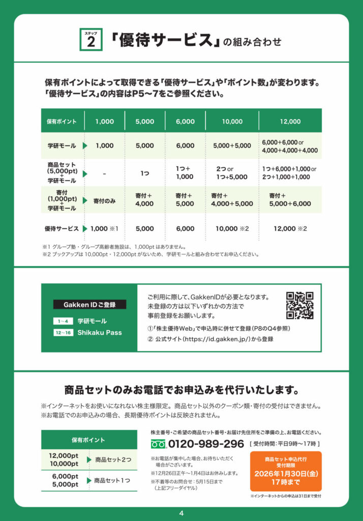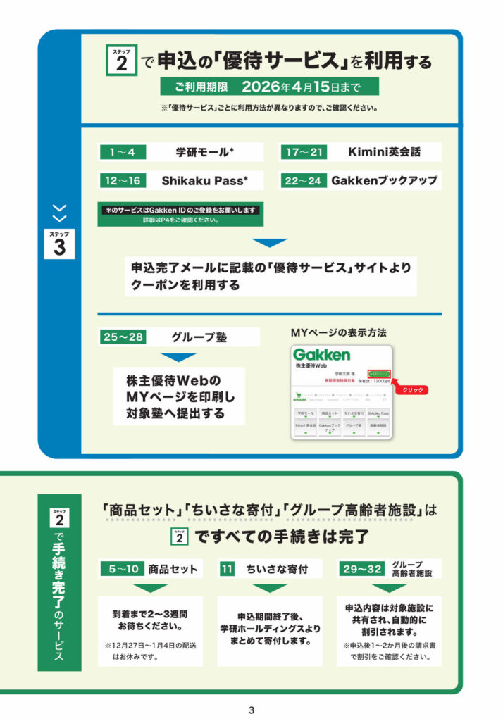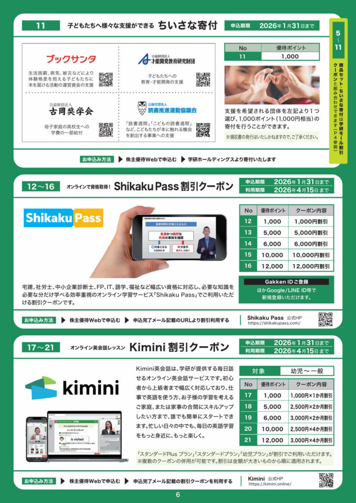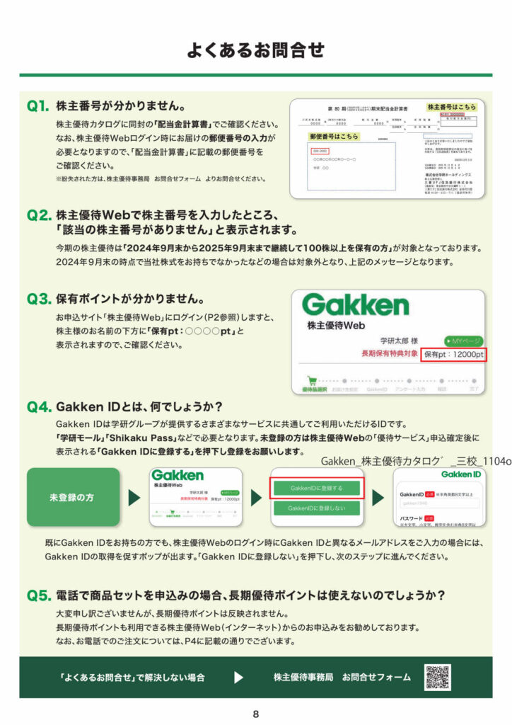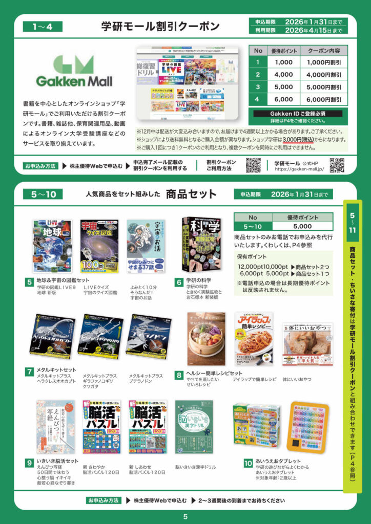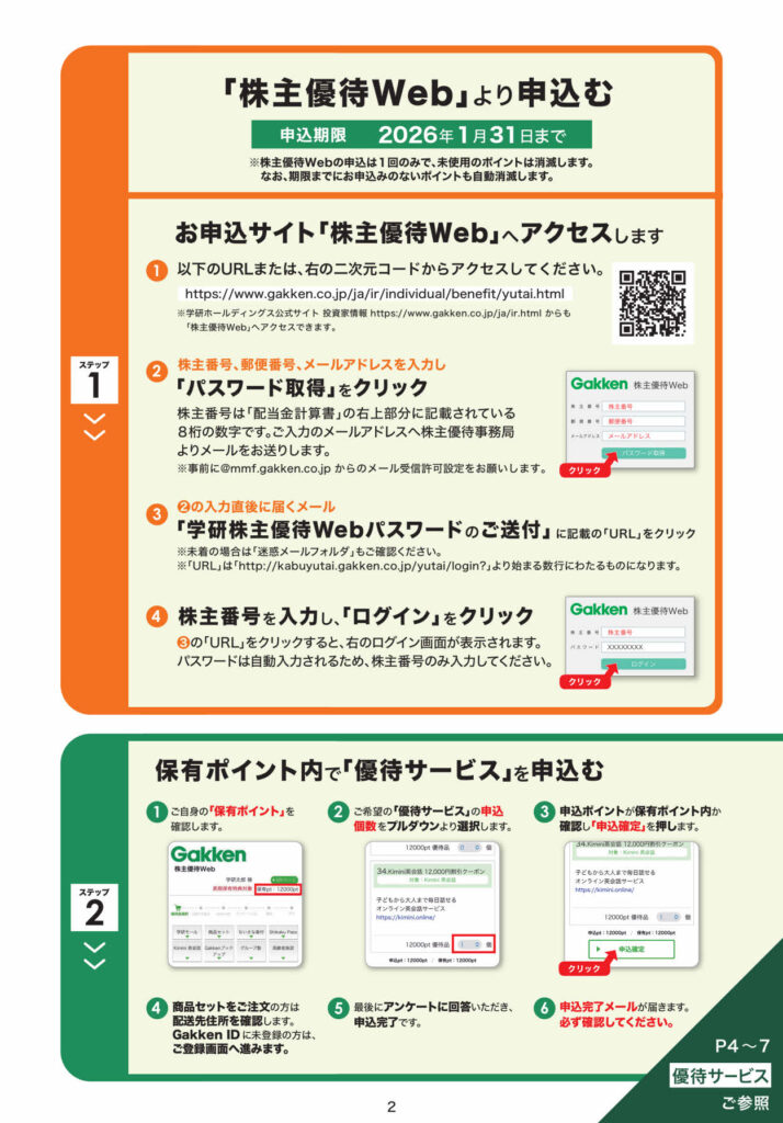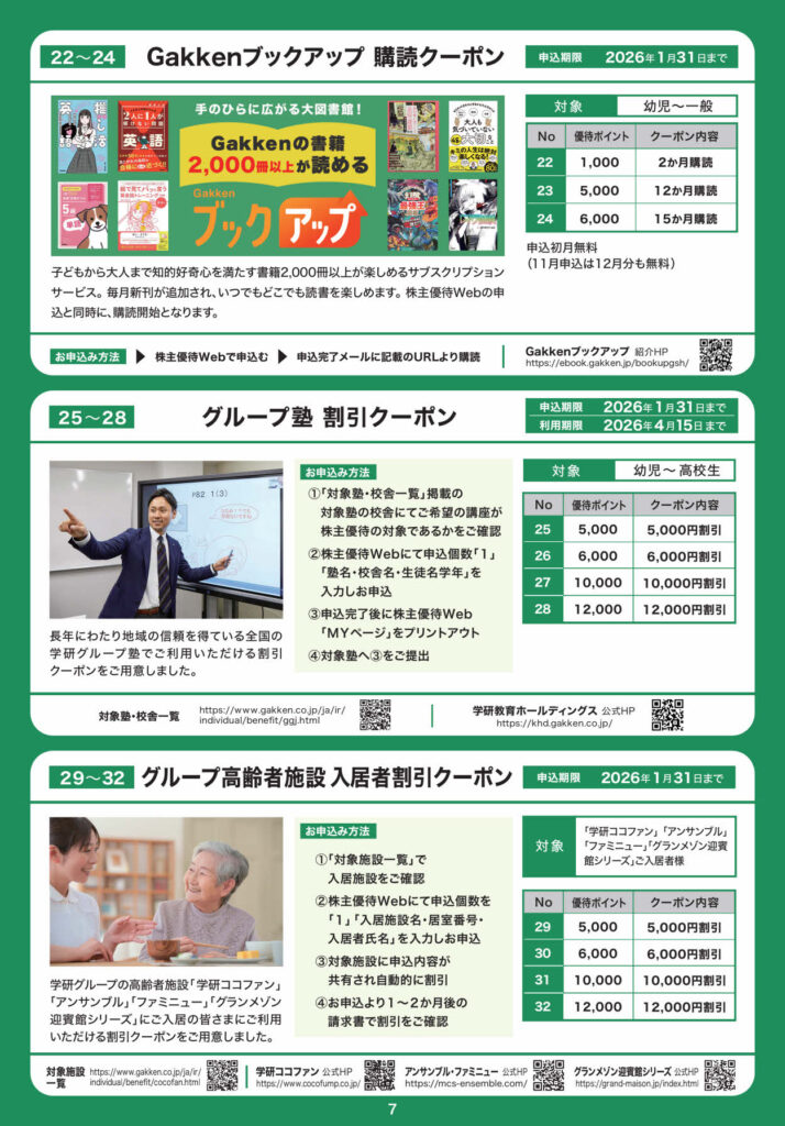 ※学研ホールディングスの株主優待は、継続保有1年以上 が条件です。