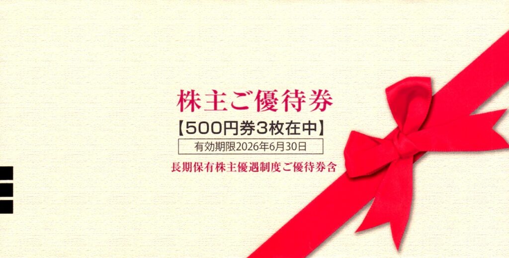 権利確定日は2025年3月末。保有株式数は100株(3年未満)。届いた優待品「1,000円分の優待券」を写真で詳しく紹介します。