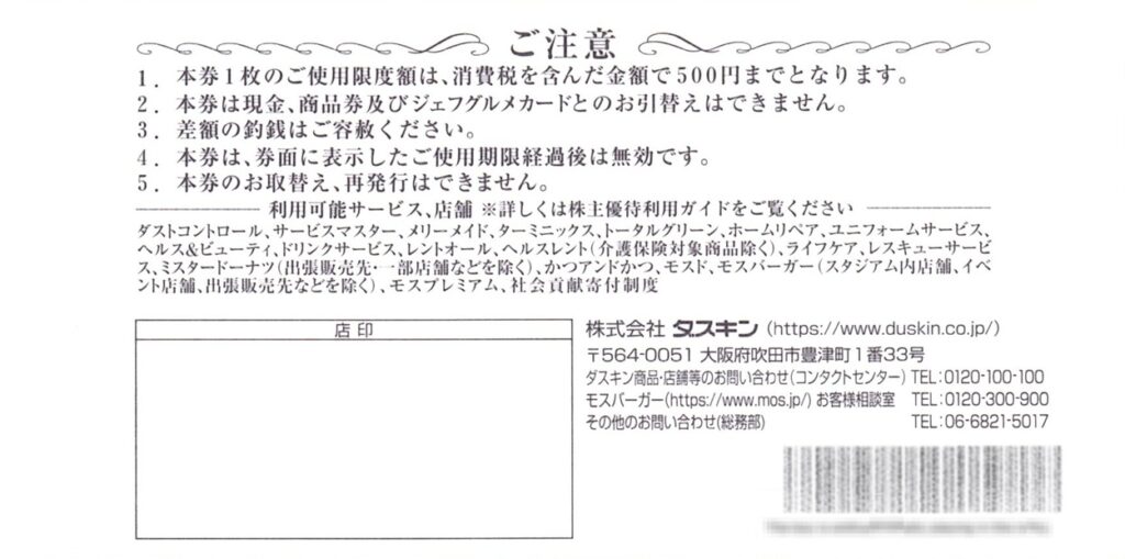 ダスキンでは、毎年 3月末・9月末 の権利確定日に以下の内容の株主優待がもらえます。