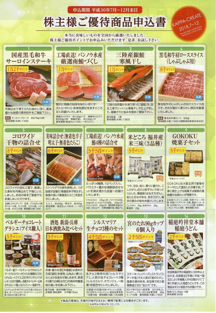 以下のチラシは2018年7月~12月末日までの間に株主優待ポイントと交換できる商品の一覧です。