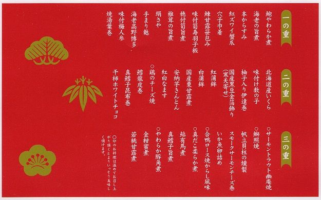 - 二の重 北海道産いくら、味付数の子、干柿ホワイトチョコ他、全13品