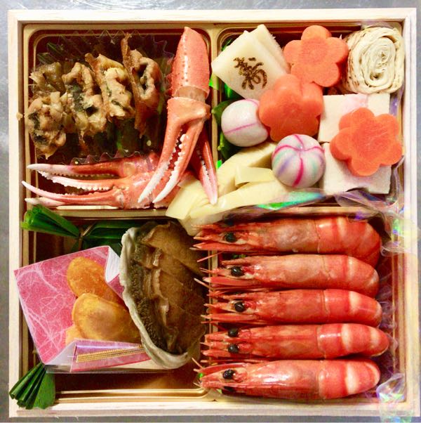 - 一の重 鮑やわらか煮、エビの旨煮、紅ズワイ蟹爪他、全14品