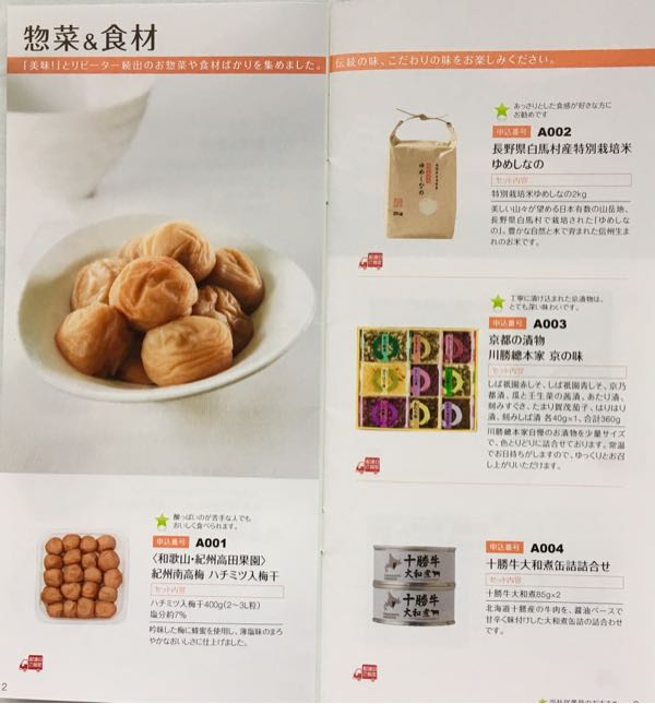 100株(3年未満)なので2,000円相当のカタログからの選択となります。