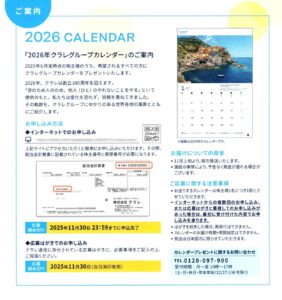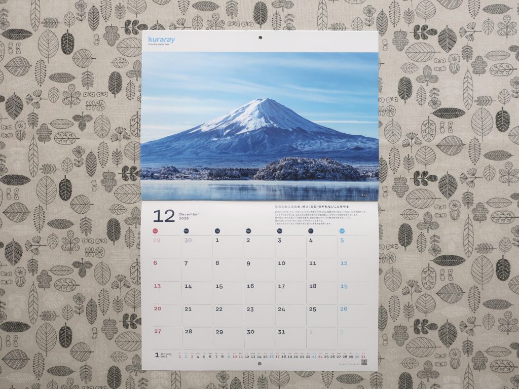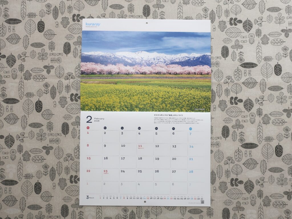 本日到着したのは「2026年版クラレグループカレンダー」です。
