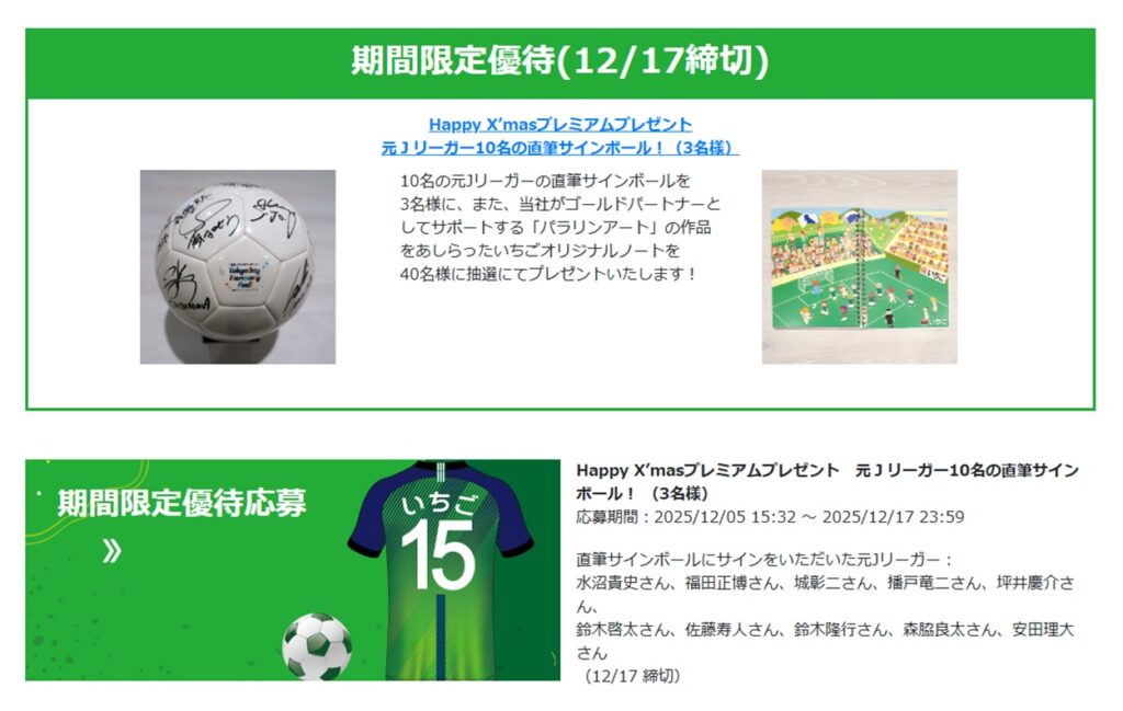 こちらは、通常のJリーグ観戦チケットの抽選とは別のキャンペーンで、以下の賞品が用意されていました。