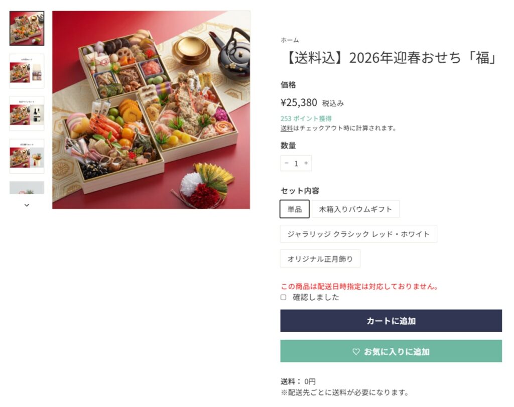 今回購入したのは、「2026年迎春おせち “福”」です。