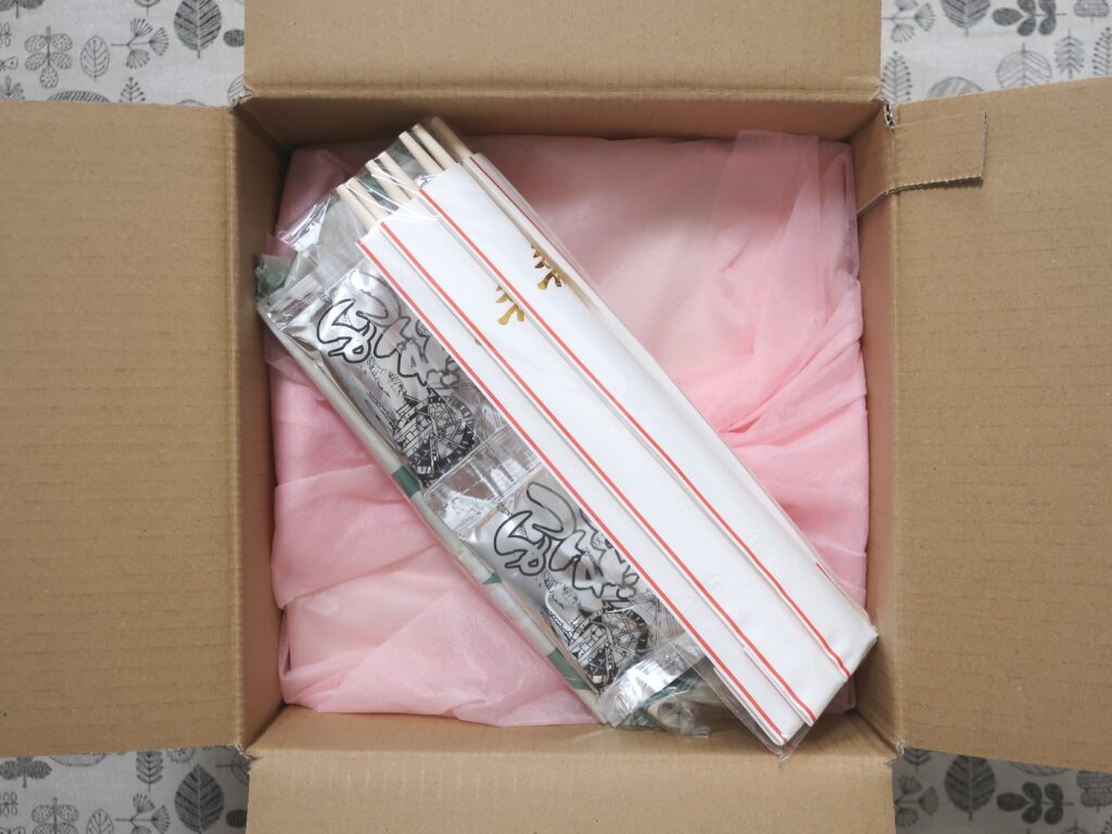届いたおせちはずっしりと重い3段重で、なんと年越しそばまでセットになっています。