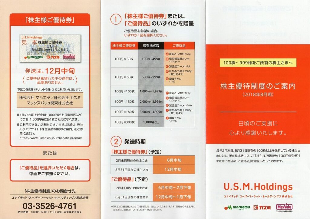 ユナイテッド・スーパーマーケット・ホールディングス(USMH)から株主優待の案内が届きました。