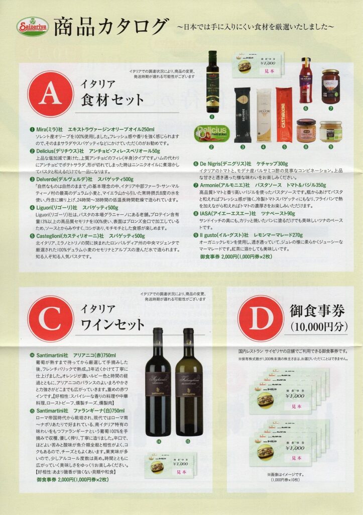 | 1,000株以上 | 優待品4品(A~D)の中から2品選択 |