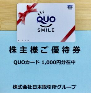 100株(1年未満)なので「1,000円分のクオカード」でした。