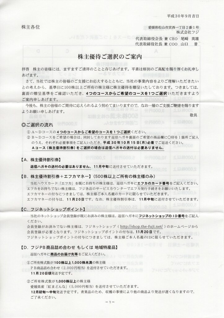 今回は、中四国エリアでスーパーマーケットを展開するフジ(8278)から届いた優待案内を紹介します。