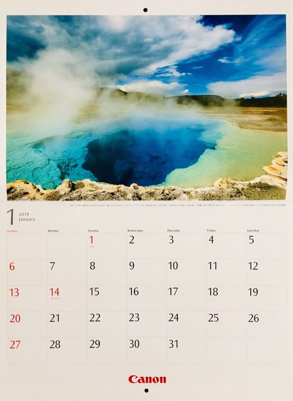 キヤノンから「2019年版のオリジナルカレンダー」が届きました。