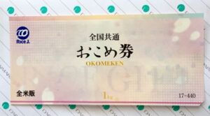 権利確定日は2018年3月末。保有株式数は100株(2年未満)。届いた優待品「1kg分のおこめ券」を写真で紹介します。