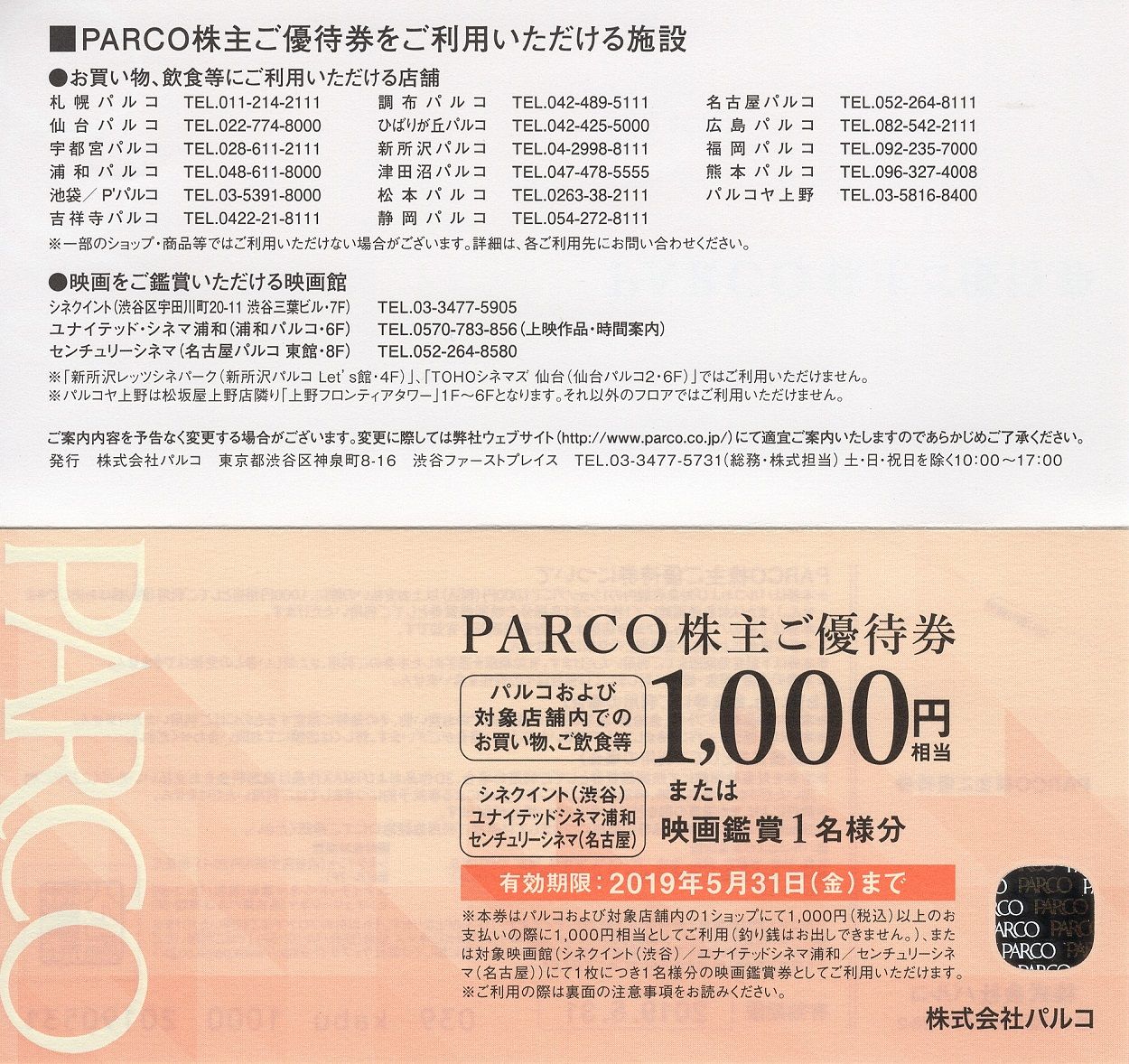 100株なので「1,000円分のPARCO株主優待券」です。